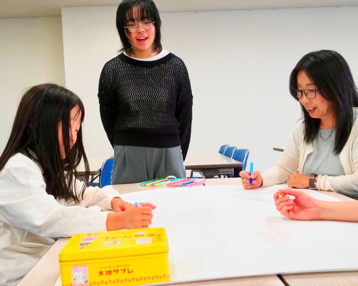 一人では思いつかなかった視点や言葉に出会い、対話を重ねる中で考えが深まっていく様子は、とても印象的でした。デザインを通して考えることで、自分たちの想いがより明確になり、相手に伝える力へとつながっていくことを実感する時間となりました。
